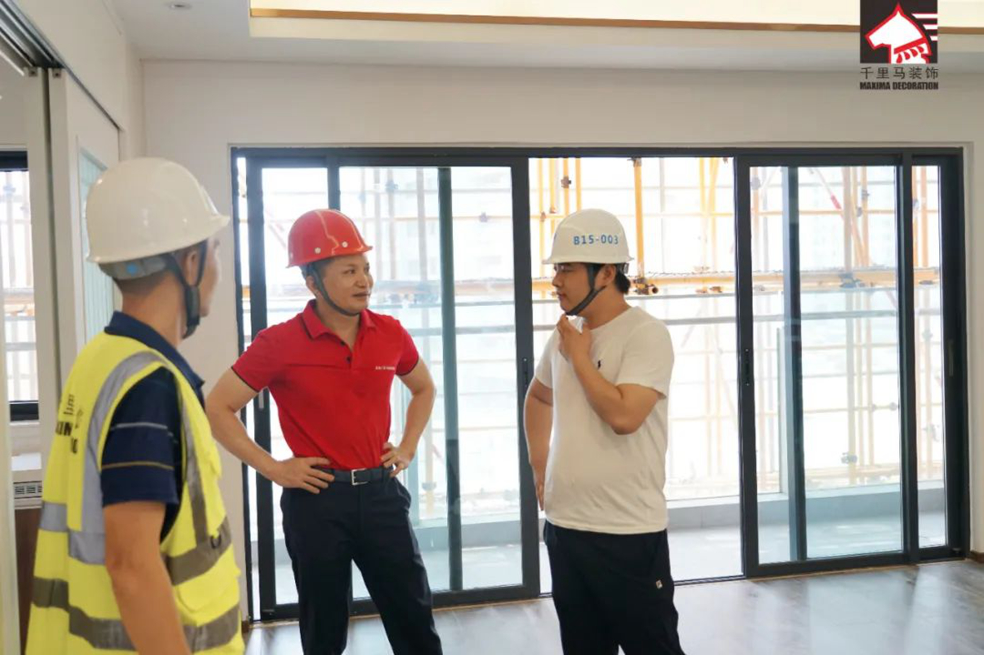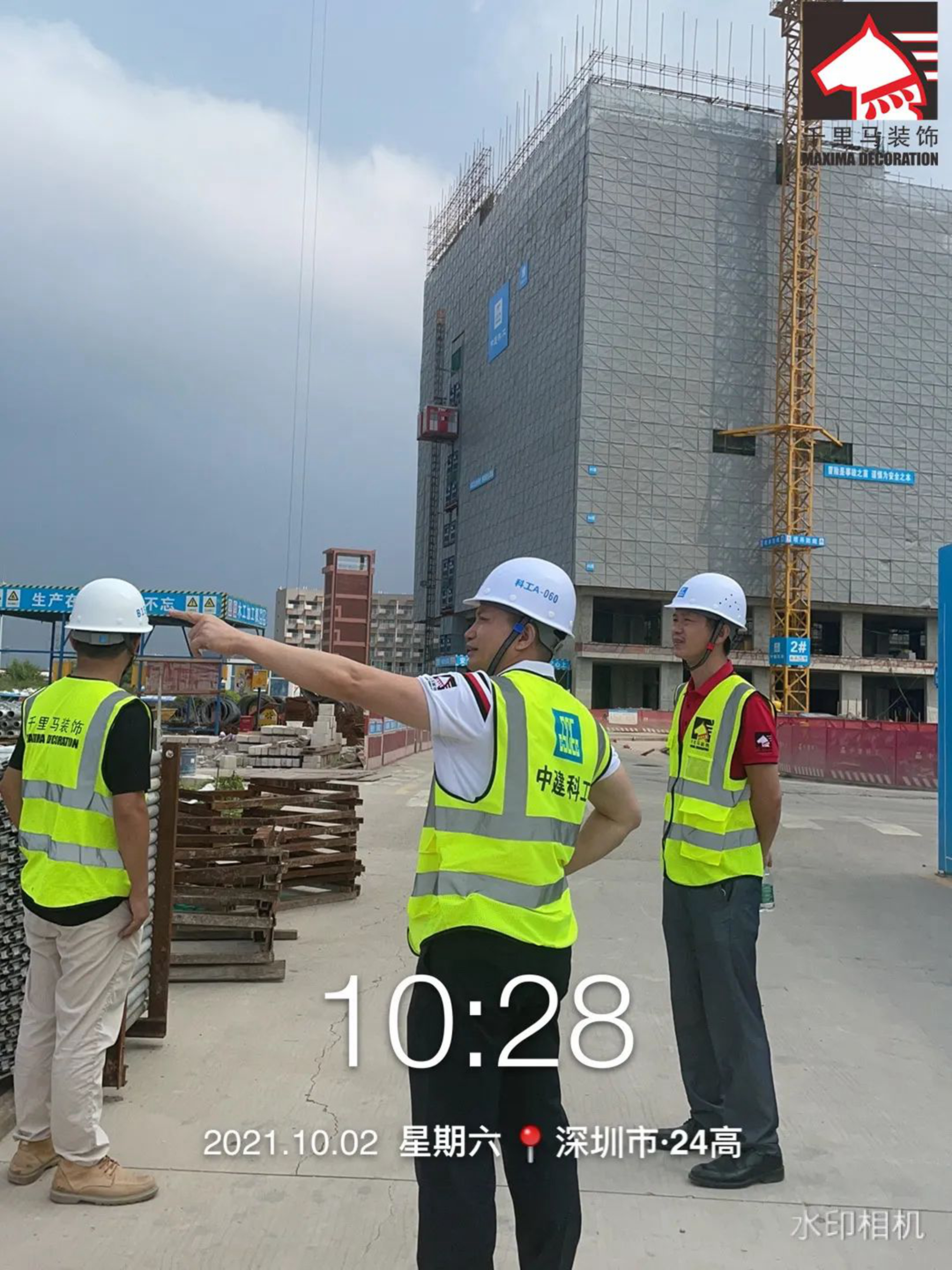 此項目位于南沙自貿區北部核心慶盛樞紐西側,東涌鎮文化廣場旁,臨鄰廣深港慶盛高鐵站及香港科技大學(廣州),享國際化教育、醫療及智能產業配套。我司承建此項目66套裝修工程,目前最緊張的是茶室和創意樣板房需要在10月11日前開發,需協調解決木飾面、柜體、戶內門、玻璃等材料的到場時間。李董表示,公司將在相應的時間節點內,完成相關材料的協調進場,爭取時間保障項目按期交付。