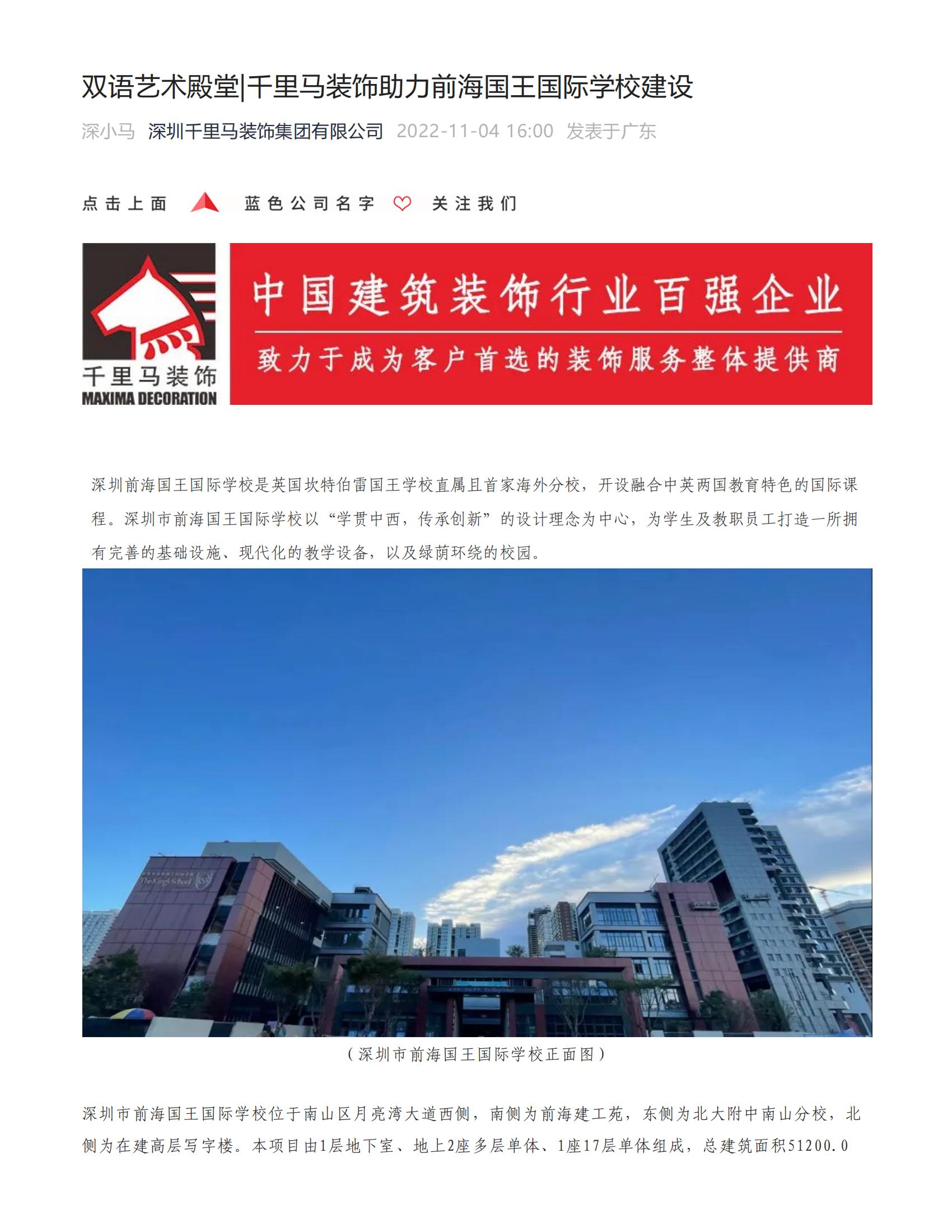 雙語藝術殿堂|千里馬裝飾助力前海國王國際學校建設