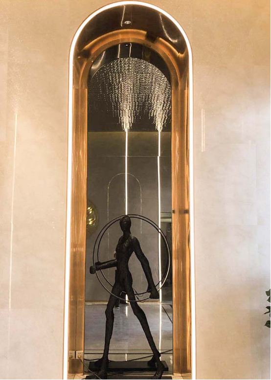 藝術生門洞邊緣,內(nèi)部安裝燈帶,表面采用的是白色亞克力,燈光效果佳。