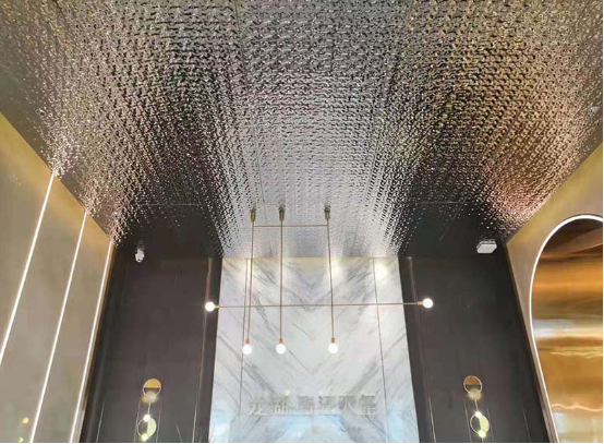 接待臺的水波紋天花,采用的是水波紋不銹鋼。