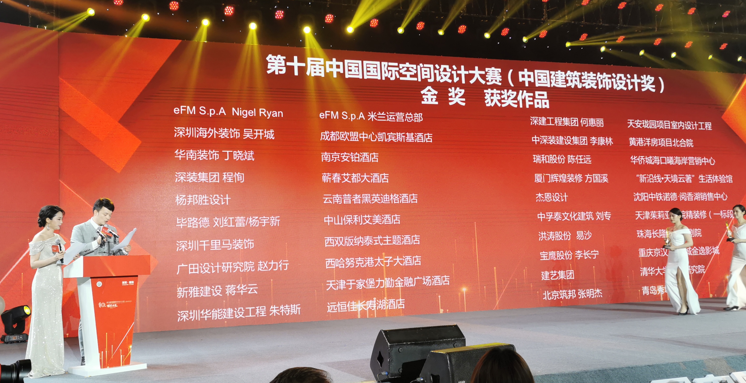9月16日,2020中國建筑裝飾產(chǎn)業(yè)發(fā)展論壇暨第十屆中國國際空間設(shè)計(jì)大賽(中國建筑裝飾設(shè)計(jì)獎(jiǎng))頒獎(jiǎng)典禮在深圳市福田區(qū)舉行。中國建筑裝飾協(xié)會會長劉曉一,深圳市福田區(qū)委副書記、區(qū)長黃偉等領(lǐng)導(dǎo)以及行業(yè)企業(yè)家、設(shè)計(jì)翹楚共同見證了這一年一度的大賽盛典,獲獎(jiǎng)名單在本次盛典上隆重揭曉。