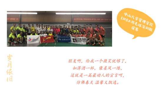 比賽中發(fā)揚(yáng)了“友誼第一、比賽第二”的體育精神,各位參賽校友走出校門,在社會(huì)上摸爬滾打,至今已有十幾載,歲月在各自的臉龐心間也已印刻出了不同的滄桑質(zhì)感,但只要走上賽場,沉睡于靈魂中的熱血激情就被喚醒,臉上輕松的笑容、場上矯健的身姿,像極了十幾年前穿著校服的一張張青澀、純真的少年,尤其是中山大學(xué)管理學(xué)院EMBA黃埔32期動(dòng)動(dòng)隊(duì),一個(gè)班組成了一支實(shí)力不凡的10人隊(duì)伍,在比賽過程中團(tuán)結(jié)合作、默契配合,是“奮斗、愛、分享”精神最生動(dòng)的詮釋和體現(xiàn)。曾經(jīng)校友相聚于球場,便將半世滄桑拋腦后,一朝何妨作水仙。