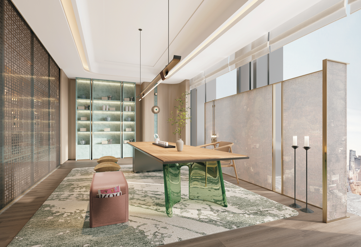 前海紫荊港灣會所的整體設計走新東方風格。本次的設計理念,是希望隱于鬧市,藝文養(yǎng)心,是都會中的桃花源,總體表達低調(diào)奢華和內(nèi)斂雅致的設計風格,將現(xiàn)化風格和傳統(tǒng)元素相互融合,形成豐富的感觀體驗,為客戶帶來返璞歸真的全新感觀體驗!海派東方,演繹奢意東方之美!將柔和的線條滲透于各空間,讓水之意向以抽象的方式回歸空間,行走于墻面,流淌于天花,似靜似動。
